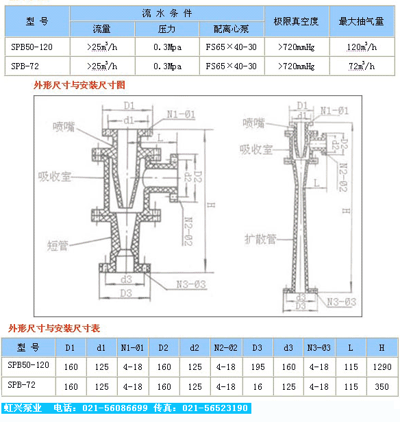 SPB型玻璃鋼水噴射真空泵SPB型玻璃鋼水噴射真空泵是一種具有抽真空、冷凝、排水等三種有效能的機(jī)械裝置。它是利用一定壓力的水流通過對(duì)稱均布成一定傾斜的噴出。聚合在一個(gè)焦點(diǎn)上,由于噴射水流速度很高,于是周圍形成負(fù)壓使器室內(nèi)產(chǎn)生真空,另外由于二次蒸氣冷凝成水,少量未被冷凝的蒸氣由與不凝結(jié)的氣體亦由于與高速噴射的水互相摩擦,混合與擠壓,通過擴(kuò)壓管被排除,使器室內(nèi)形成更高的真空。但目前生產(chǎn)水利噴射器的制造廠較小,品種亦不齊全,為此,我們近年來不斷改進(jìn)設(shè)計(jì),采用多噴咀與氣環(huán)(導(dǎo)向盤)等結(jié)構(gòu),以及用多級(jí)泵進(jìn)水,低位安裝,吸需安裝高度4.5米,完善與提高了其工作性能,具有一定的先進(jìn)性,是真空冷凝設(shè)備的一種革新。